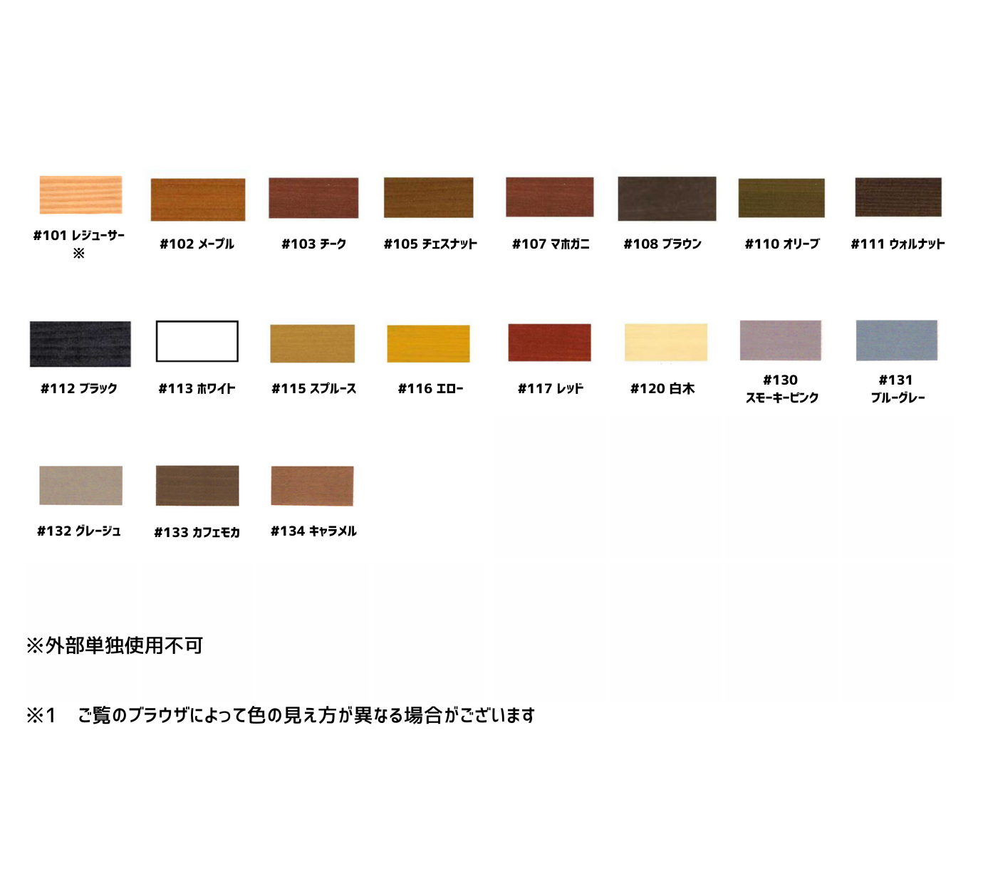 ・マツ、杉などの吸い込みムラや塗りつぎムラが出やすい針葉樹や、材質が柔らかい木材に塗装する場合は、レジューサーを下塗りしてから有色を上塗りしてください。
