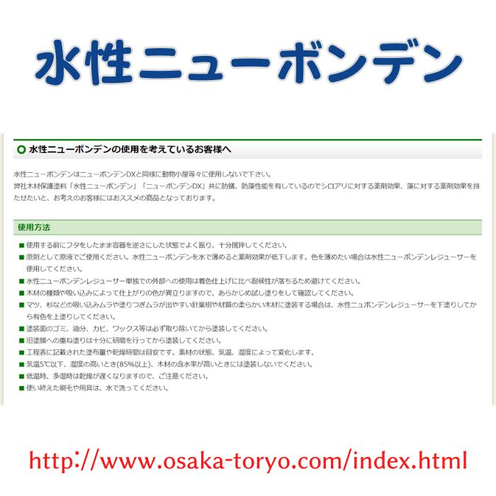 ・他の色を薄めたい場合に「レジューサー」をお使いください。水性ニューボンデンを水で薄めると薬剤効果が低下します。